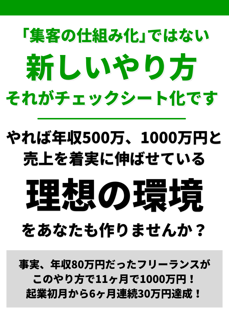 500万、1000万円と次々と達成してきた実績を基に作成されたチェックシートです。